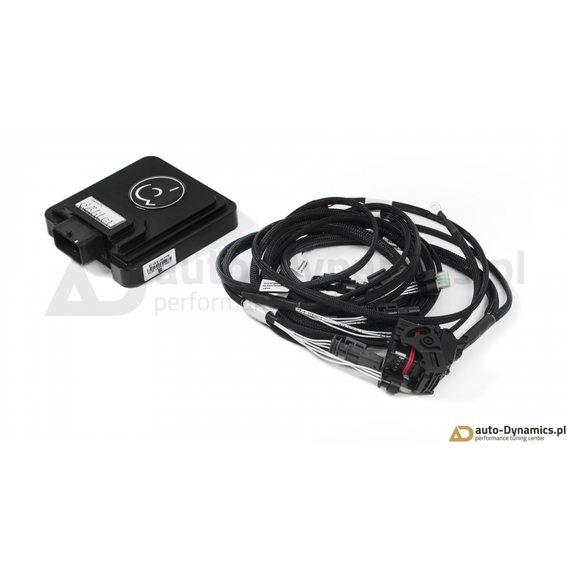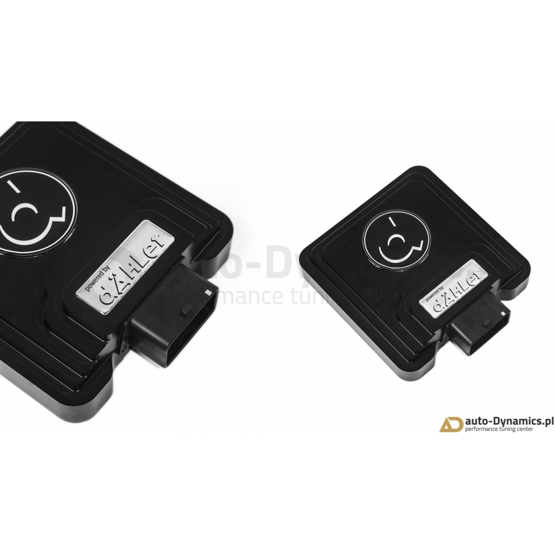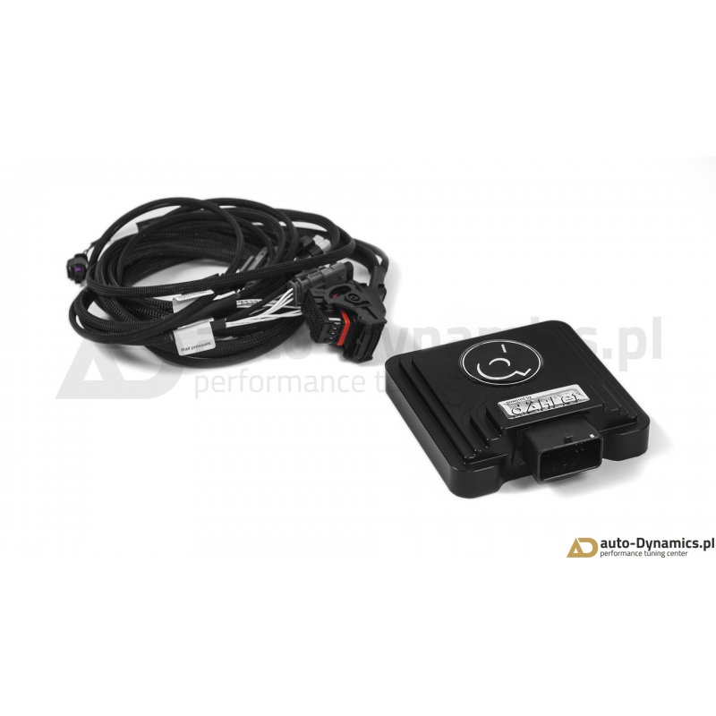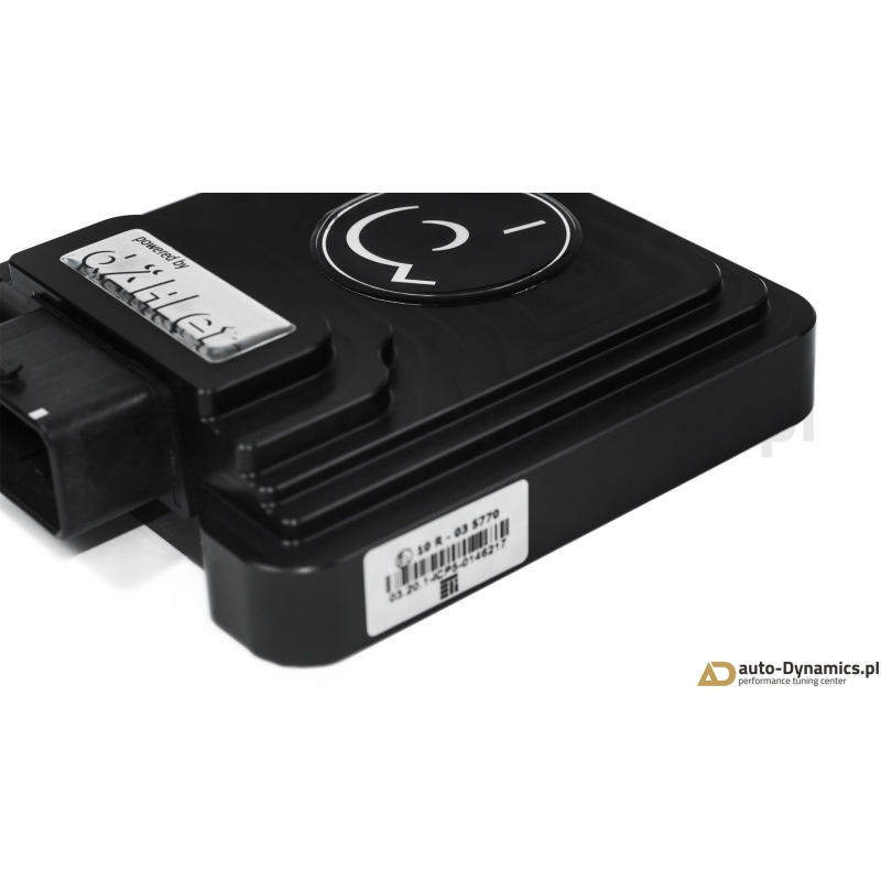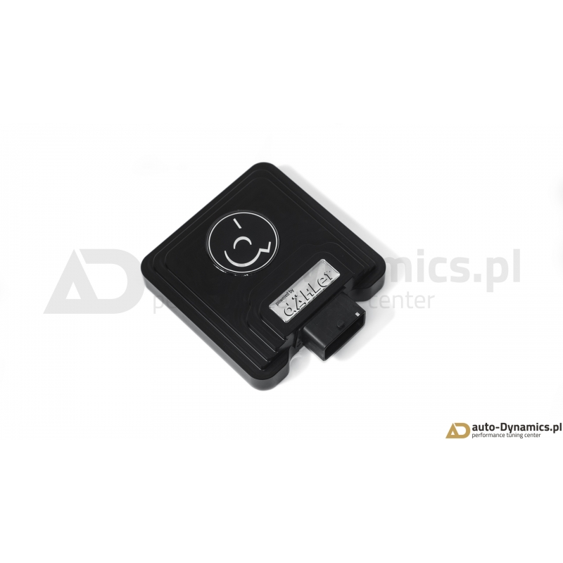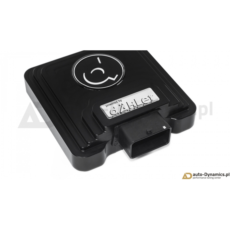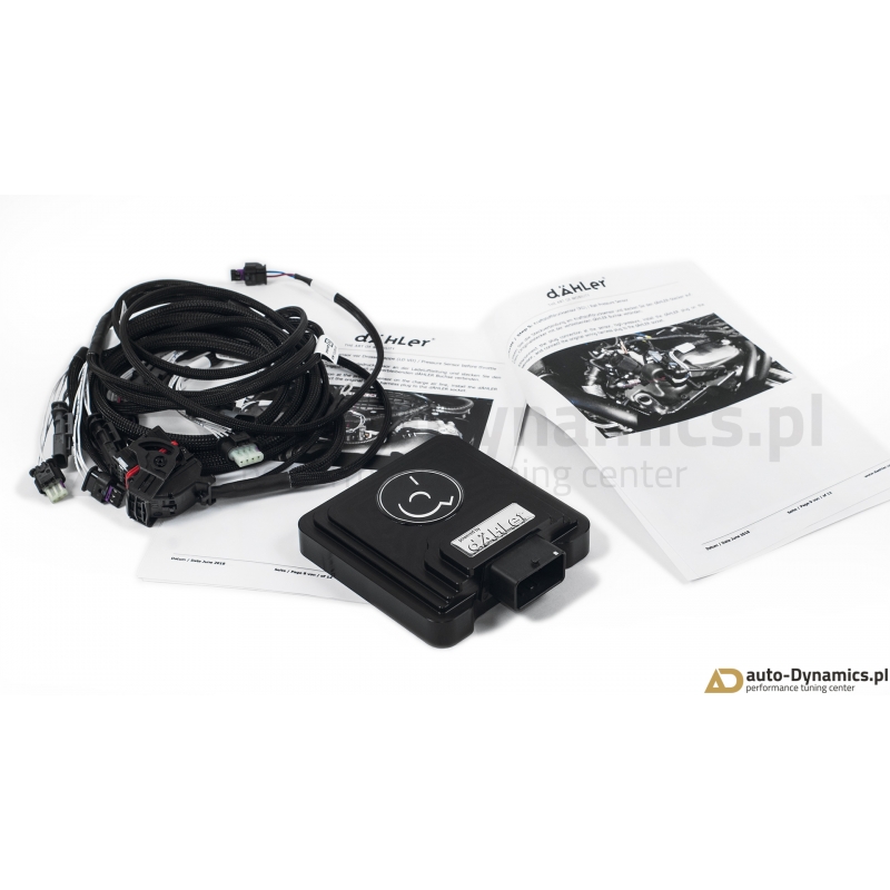 Zaawansowany, cyfrowy moduł elektroniczny silnika [ECU] wraz z specjalną, rozbudowaną wiązką komunikującą się z sensorami magistrali "Controller Area Network (CAN bus)". Sterownik zapewnia ponadprzeciętny ale w pełni bezpieczny dla silnika, skrzyni biegów oraz zespołu napędowego przyrost mocy i momentu obrotowego wykorzystując rezerwy silnika i jego podzespołów pozostawione przez producenta. Dzięki bezinwazyjnym połączeniom fabryczna gwarancja pojazdu zostaje zachowana. Inteligenta jednostka dÄHLer w sposób ciągły monitoruje wielowątkowy sygnał przechwytywany z wielu sensorów jednostki napędowej analizując w czasie rzeczywistym szereg otrzymywanych informacji. Zaimplementowany wewnątrz kontrolera wysoko wydajny procesor po dokonaniu koniecznych obliczeń wysyła zwrotnie do odpowiednich sensorów zmodyfikowany sygnał który w efekcie skutkuje wzrostem mocy i momentu obrotowego a ponadto, w odróżnieniu od konkurencyjnych produktów wewnętrzny komputer wysyła również redukujący moc sygnał w przypadku gdy parametry silnika cechują się fluktuacją, co w konsekwencji uniemożliwia np. przegrzanie się jednostki napędowej. Kontroler ECU korzysta z map z dynamiczną adaptacją i pozwala na osiągi identyczne do typowego chiptuningu przez OBD - monitoruje wiele wartości w czasie rzeczywistym i elastycznie dopiera wskazania. Szybsza reakcja przepustnicy i poprawiona reakcja pedału przyspieszenia zapewnia jeszcze większe bezpieczeństwo podczas wyprzedzania i ogólny wzrost pewności na drodze. Montaż sterownika dÄHLer nie wymaga przeprogramowania fabrycznej jednostki ECU [komputera samochodowego] – jednostka instalowana jest w systemie Plug & Play i w tym samym schemacie jest odłączana – jeśli sytuacja tego wymaga. Moduł ECU dÄHLer jest idealnym i rekomendowanym rozwiązaniem dla entuzjastów pragnących cieszyć się większą mocą i momentem obrotowym w połączeniu z zachowaniem fabrycznej gwarancji. Certyfikowany [TUV] produkt od renomowanego, szwajcarskiego producenta – firmy dÄHLer.
