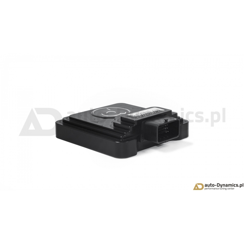 Zaawansowany, cyfrowy moduł elektroniczny silnika [ECU] wraz z specjalną, rozbudowaną wiązką komunikującą się z sensorami magistrali "Controller Area Network (CAN bus)". Sterownik zapewnia ponadprzeciętny ale w pełni bezpieczny dla silnika, skrzyni biegów oraz zespołu napędowego przyrost mocy i momentu obrotowego wykorzystując rezerwy silnika i jego podzespołów pozostawione przez producenta. Dzięki bezinwazyjnym połączeniom fabryczna gwarancja pojazdu zostaje zachowana. Inteligenta jednostka dÄHLer w sposób ciągły monitoruje wielowątkowy sygnał przechwytywany z wielu sensorów jednostki napędowej analizując w czasie rzeczywistym szereg otrzymywanych informacji. Zaimplementowany wewnątrz kontrolera wysoko wydajny procesor po dokonaniu koniecznych obliczeń wysyła zwrotnie do odpowiednich sensorów zmodyfikowany sygnał który w efekcie skutkuje wzrostem mocy i momentu obrotowego a ponadto, w odróżnieniu od konkurencyjnych produktów wewnętrzny komputer wysyła również redukujący moc sygnał w przypadku gdy parametry silnika cechują się fluktuacją, co w konsekwencji uniemożliwia np. przegrzanie się jednostki napędowej. Kontroler ECU korzysta z map z dynamiczną adaptacją i pozwala na osiągi identyczne do typowego chiptuningu przez OBD - monitoruje wiele wartości w czasie rzeczywistym i elastycznie dopiera wskazania. Szybsza reakcja przepustnicy i poprawiona reakcja pedału przyspieszenia zapewnia jeszcze większe bezpieczeństwo podczas wyprzedzania i ogólny wzrost pewności na drodze. Montaż sterownika dÄHLer nie wymaga przeprogramowania fabrycznej jednostki ECU [komputera samochodowego] – jednostka instalowana jest w systemie Plug & Play i w tym samym schemacie jest odłączana – jeśli sytuacja tego wymaga. Moduł ECU dÄHLer jest idealnym i rekomendowanym rozwiązaniem dla entuzjastów pragnących cieszyć się większą mocą i momentem obrotowym w połączeniu z zachowaniem fabrycznej gwarancji. Certyfikowany [TUV] produkt od renomowanego, szwajcarskiego producenta – firmy dÄHLer.