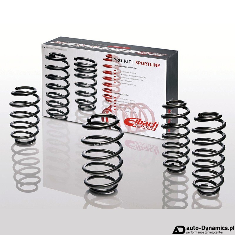Top-Seller w ofercie Eibach. Pierwszy wybór fanów motoryzacji za całym świecie. Eibach Pro-Kit to idealne rozwiązanie dla seryjnych aut. Sprawdzony system maksymalizuje precyzję prowadzenia i gwarantuje sportowy wygląd. Zestaw Pro-Kit obniża punkt ciężkości auta i zmniejsza pochylenia karoserii przy przyspieszaniu, pokonywaniu zakrętów czy też hamowaniu. Eibach Pro-Kit w połączeniu z dedykowanymi felgami i oponami są gwarancją optymalnych osiągów. Zestaw Pro-Kit zmniejsza również zbędny odstęp pomiędzy kołem, a nadkolem co skutkuje bardziej sportowych wyglądem auta. Zestawy Eibach Pro-Kit projektowane są przez inżynierów i ekspertów odpowiedzialnych za testy w taki sposób, aby dostarczały jednocześnie sportowy wygląd i osiągi nie wpływając jednocześnie na bezpieczeństwo czy jakość prowadzenia.