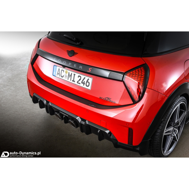 Sportowy, aerodynamiczny, dyfuzor zderzaka tylnego dedykowany do Mini Cooper S / JCW [F66] wykonany z niemiecką precyzją przy zastosowaniu najwyższej jakości materiałów [PU-RIM]. Element wprost od renomowanego, kultowego, niemieckiego producenta specjalizującego się w modyfikacjach pojazdów BMW / MINI – firmy AC Schnitzer