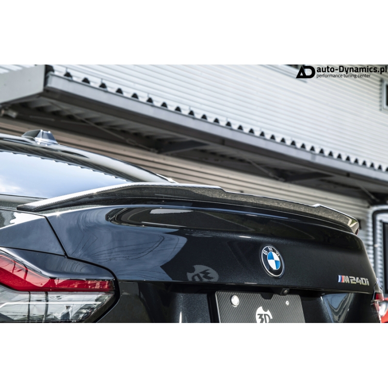 Sportowy, aerodynamiczny spoiler pokrywy dla maski bagażnika wykonany z najwyższej jakości włókna węglowego [carbon fiber], dedykowany do BMW Serii 2 [G42]. Nadający indywidualnego stylu i niesamowitego, sportowego charakteru. Oryginalny produkt od renomowanego, japońskiego tunera – firmy 3DDesign