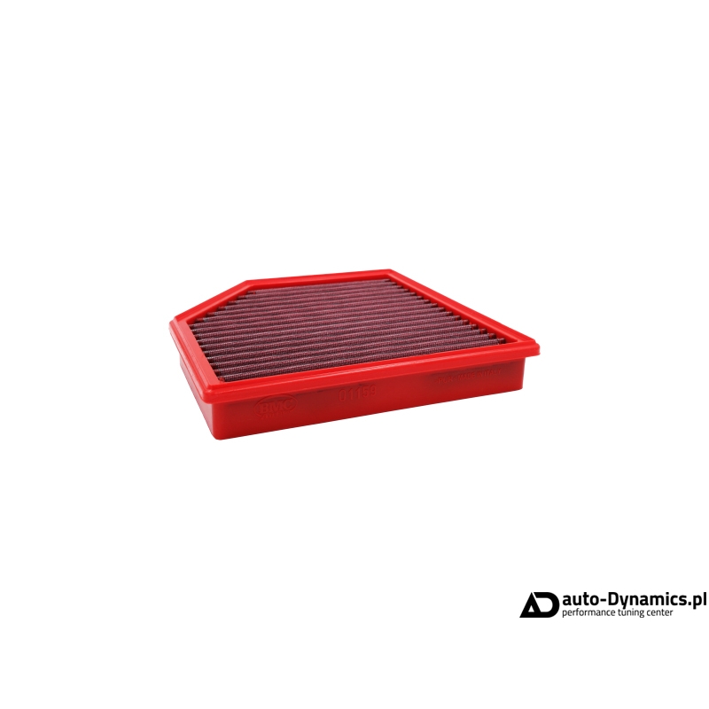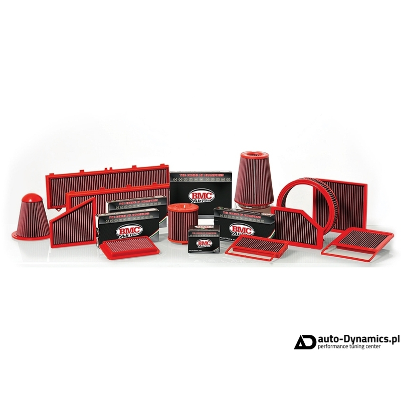 Sportowy filtr powietrza BMC zastępujący seryjny / fabryczny filtr wykonany z papieru. Zwiększona przepustowość wkładki powoduję dostawę większej ilości powietrza co przekłada się na poprawę osiągów pojazdu. Materiał filtracyjny zastosowany w filtrach to specjalna bawełna nasączona odpowiednim olejkiem przechwytującym najmniejsze zanieczyszczenia. Filtr składa się z kilku warstw tej bawełny umieszczonych między dwiema powłokami metalowej siatki. Całość jest pofałdowana w celu zwiększenia powierzchni filtracyjnej i umieszczona w ramce wykonanej z wysokiej jakości poliuretanu. Ramka ma kształt odpowiadający oryginalnej obudowie filtra – AirBoxa, dzięki czemu, wymiana filtra jest bardzo prosta. Poliuretanowa ramka filtra jest wykonana jako odlew, nie ma miejsc łączenia, a sam poliuretan jest odporny na odkształcenia powstające w wysokiej temperaturze i wilgotności co zapewnia najwyższą wytrzymałość i długowieczność filtra. Filtry są wielorazowego użytku [wieczyste], dzięki czemu można cieszyć się ich doskonałymi parametrami przez wiele lat bez potrzeby wymiany. Filtr należy czyścić co około 10 000 km za pomocą specjalnie do tego celu przeznaczonych środków z oferty BMC. Dzięki odpowiedniej pielęgnacji filtr utrzymuje swoje doskonałe zdolności filtracyjne. Kompletny system dolotowy stanowi idealną bazę dla entuzjastów chcących w pojeździe podnieść moc i moment obrotowy oraz zwiększyć efektywność już posiadanych parametrów.