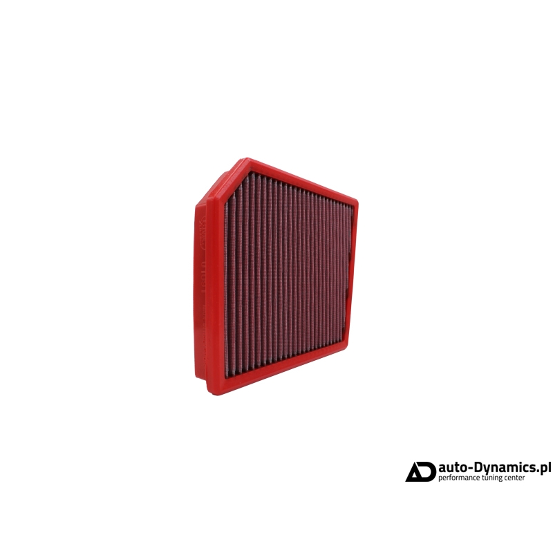 Sportowy filtr powietrza BMC zastępujący seryjny / fabryczny filtr wykonany z papieru. Zwiększona przepustowość wkładki powoduję dostawę większej ilości powietrza co przekłada się na poprawę osiągów pojazdu. Materiał filtracyjny zastosowany w filtrach to specjalna bawełna nasączona odpowiednim olejkiem przechwytującym najmniejsze zanieczyszczenia. Filtr składa się z kilku warstw tej bawełny umieszczonych między dwiema powłokami metalowej siatki. Całość jest pofałdowana w celu zwiększenia powierzchni filtracyjnej i umieszczona w ramce wykonanej z wysokiej jakości poliuretanu. Ramka ma kształt odpowiadający oryginalnej obudowie filtra – AirBoxa, dzięki czemu, wymiana filtra jest bardzo prosta. Poliuretanowa ramka filtra jest wykonana jako odlew, nie ma miejsc łączenia, a sam poliuretan jest odporny na odkształcenia powstające w wysokiej temperaturze i wilgotności co zapewnia najwyższą wytrzymałość i długowieczność filtra. Filtry są wielorazowego użytku [wieczyste], dzięki czemu można cieszyć się ich doskonałymi parametrami przez wiele lat bez potrzeby wymiany. Filtr należy czyścić co około 10 000 km za pomocą specjalnie do tego celu przeznaczonych środków z oferty BMC. Dzięki odpowiedniej pielęgnacji filtr utrzymuje swoje doskonałe zdolności filtracyjne. Kompletny system dolotowy stanowi idealną bazę dla entuzjastów chcących w pojeździe podnieść moc i moment obrotowy oraz zwiększyć efektywność już posiadanych parametrów.