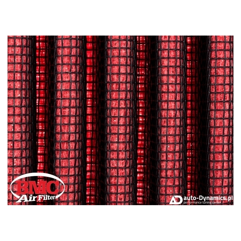 Sportowy filtr powietrza BMC zastępujący seryjny / fabryczny filtr wykonany z papieru. Zwiększona przepustowość wkładki powoduję dostawę większej ilości powietrza co przekłada się na poprawę osiągów pojazdu. Materiał filtracyjny zastosowany w filtrach to specjalna bawełna nasączona odpowiednim olejkiem przechwytującym najmniejsze zanieczyszczenia. Filtr składa się z kilku warstw tej bawełny umieszczonych między dwiema powłokami metalowej siatki. Całość jest pofałdowana w celu zwiększenia powierzchni filtracyjnej i umieszczona w ramce wykonanej z wysokiej jakości poliuretanu. Ramka ma kształt odpowiadający oryginalnej obudowie filtra – AirBoxa, dzięki czemu, wymiana filtra jest bardzo prosta. Poliuretanowa ramka filtra jest wykonana jako odlew, nie ma miejsc łączenia, a sam poliuretan jest odporny na odkształcenia powstające w wysokiej temperaturze i wilgotności co zapewnia najwyższą wytrzymałość i długowieczność filtra. Filtry są wielorazowego użytku [wieczyste], dzięki czemu można cieszyć się ich doskonałymi parametrami przez wiele lat bez potrzeby wymiany. Filtr należy czyścić co około 10 000 km za pomocą specjalnie do tego celu przeznaczonych środków z oferty BMC. Dzięki odpowiedniej pielęgnacji filtr utrzymuje swoje doskonałe zdolności filtracyjne. Kompletny system dolotowy stanowi idealną bazę dla entuzjastów chcących w pojeździe podnieść moc i moment obrotowy oraz zwiększyć efektywność już posiadanych parametrów.