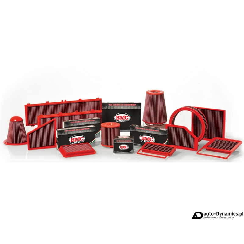 Sportowy filtr powietrza BMC zastępujący seryjny / fabryczny filtr wykonany z papieru. Zwiększona przepustowość wkładki powoduję dostawę większej ilości powietrza co przekłada się na poprawę osiągów pojazdu. Materiał filtracyjny zastosowany w filtrach to specjalna bawełna nasączona odpowiednim olejkiem przechwytującym najmniejsze zanieczyszczenia. Filtr składa się z kilku warstw tej bawełny umieszczonych między dwiema powłokami metalowej siatki. Całość jest pofałdowana w celu zwiększenia powierzchni filtracyjnej i umieszczona w ramce wykonanej z wysokiej jakości poliuretanu. Ramka ma kształt odpowiadający oryginalnej obudowie filtra – AirBoxa, dzięki czemu, wymiana filtra jest bardzo prosta. Poliuretanowa ramka filtra jest wykonana jako odlew, nie ma miejsc łączenia, a sam poliuretan jest odporny na odkształcenia powstające w wysokiej temperaturze i wilgotności co zapewnia najwyższą wytrzymałość i długowieczność filtra. Filtry są wielorazowego użytku [wieczyste], dzięki czemu można cieszyć się ich doskonałymi parametrami przez wiele lat bez potrzeby wymiany. Filtr należy czyścić co około 10 000 km za pomocą specjalnie do tego celu przeznaczonych środków z oferty BMC. Dzięki odpowiedniej pielęgnacji filtr utrzymuje swoje doskonałe zdolności filtracyjne. Kompletny system dolotowy stanowi idealną bazę dla entuzjastów chcących w pojeździe podnieść moc i moment obrotowy oraz zwiększyć efektywność już posiadanych parametrów.