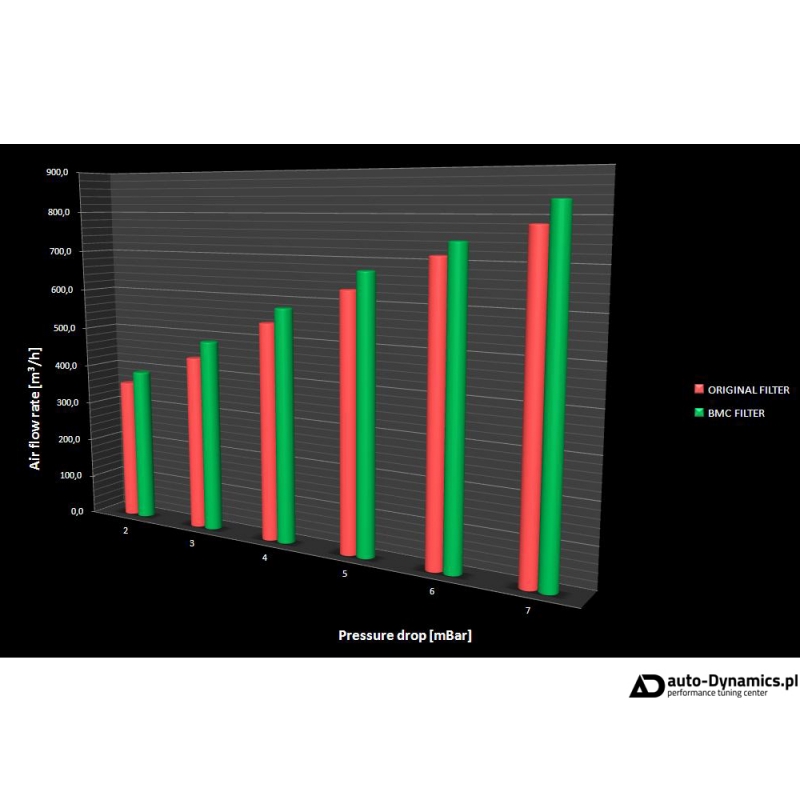 Przewagą filtrów BMC nad papierowymi filtrami [seryjnie stosowanymi w pojazdach] jest przede wszystkim: