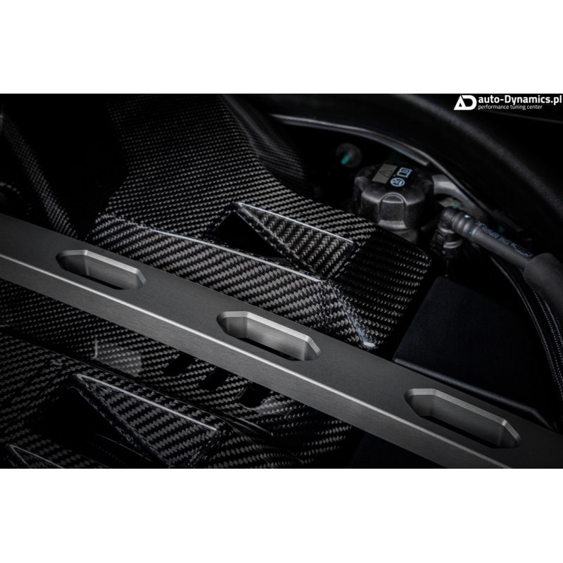Sportowa, wentylowana, wykonana w całości z włókna węglowego pokrywa / cover silnika dedykowana do BMW M2 [G87]. Nakładka wprost od renomowanego, brytyjskiego producenta – firmy Eventuri