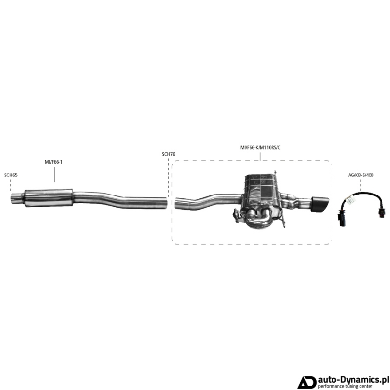 | Skład Zestawu: | Sportowy układ wydechowy zawierający tłumik końcowy z systemem zaworów / przepustnic, końcówki, zestaw rur łączących oraz wszelkie akcesoria montażowe |