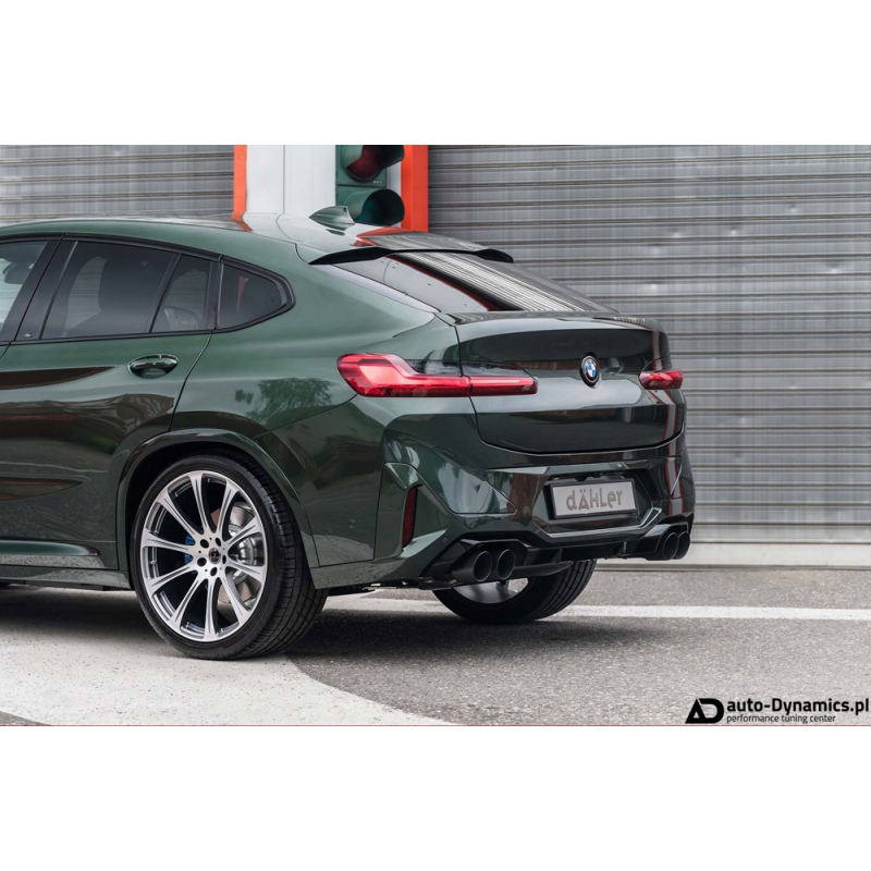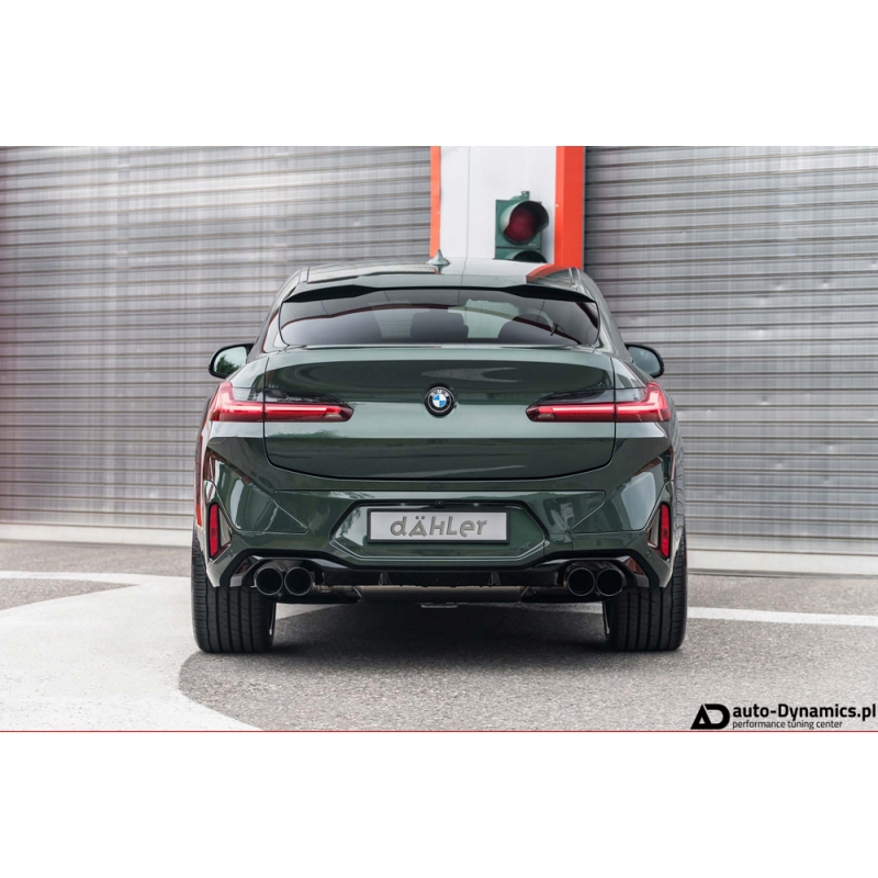 Sportowy, niesamowicie brzmiący, lekki i perfekcyjnie wykonany układ wydechowy dedykowany do BMW X4 M40i [G02]. Wyposażony w system zaworów / przepustnic odpowiedzialnych za natężenie brzmienia. Dostarczany wraz z pakietem indywidualnych końcówek. Szwajcarski, certyfikowany produkt firmy Dähler Design & Technik