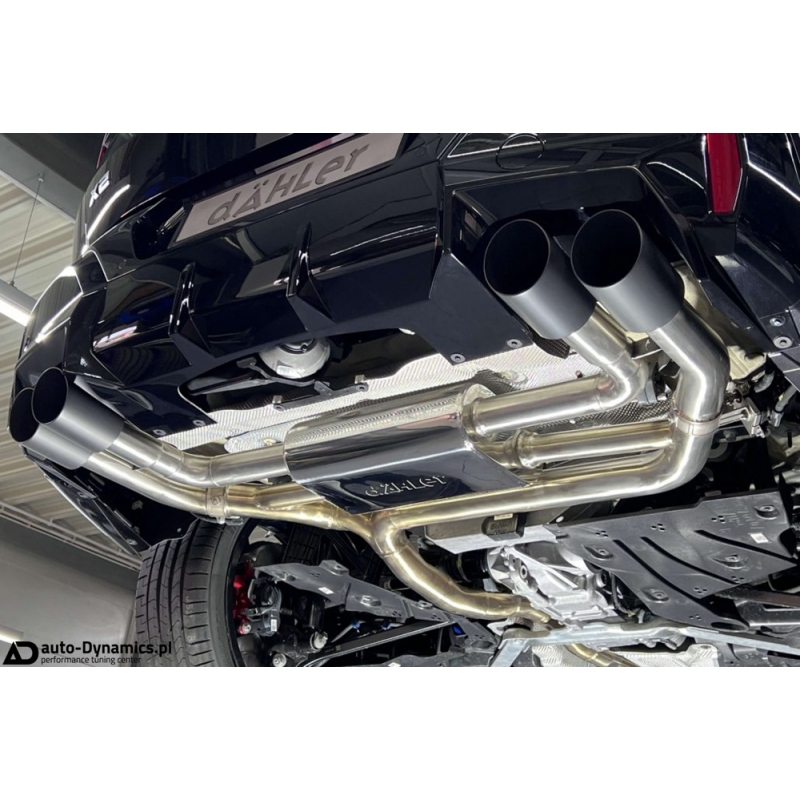 | Skład Zestawu: | Sportowy układ wydechowy typu OPF / GPF-Back z serii Competition Line z zaimplementowanym systemem zaworów / przepustnic / klap których pracą zawiaduje on-board’owy komputer BMW. Zestaw rur łączących do sekcji centralnej. Komplet czterech karbonowych lub czarnych [satyna] końcówek sygnowanych logo Dähler [dostępne również srebrne]. Zestaw wszelkich akcesoriów wymaganych do prawidłowego montażu. |